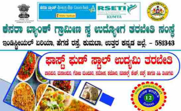 ಫಾಸ್ಟ್ ಫುಡ್ ತಯಾರಿಕೆ ಮತ್ತು ಮಾರಾಟ ಕ್ಷೇತ್ರದಲ್ಲಿ(Free fast food training)ಸ್ವಂತ ಉದ್ದಿಮೆಯನ್ನು ಆರಂಭಿಸಲು ಆಸಕ್ತಿಯನ್ನು ಹೊಂದಿರುವ ಅರ್ಹ ಅಭ್ಯರ್ಥಿಗಳಿಗೆ ಕೆನರಾ ಬ್ಯಾಂಕ್ ಗ್ರಾಮೀಣ ಸ್ವ-ಉದ್ಯೋಗ ತರಬೇತಿ...