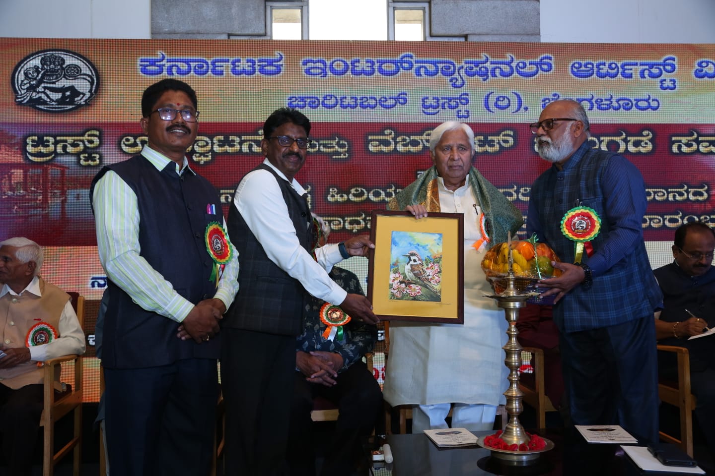BENGALURU : ಬೆಂಗಳೂರು: ಕರ್ನಾಟಕ ಚಿತ್ರಕಲಾ ಪರಿಷತ್ (Karnataka Chitrakala Parishat) ಸಭಾಂಗಣದಲ್ಲಿ ಕರ್ನಾಟಕ ಇಂಟರ್ ನ್ಯಾಷವಲ್ ಆರ್ಟಿಸ್ಟ್ ವಿಲೇಜ್ ಚಾರಿಟೇಬಲ್ ಟ್ರಸ್ಟ್ (Karnataka International Artist Village Charitable Trust) ಉದ್ಘಾಟನೆ ಮತ್ತು ವೆಬ್ ಸೈಟ್ ಬಿಡುಗಡೆ ಹಾಗೂ ಜೀವಮಾನ ಶೇಷ್ಠ ಕಲಾ ಸಾಧಕರ ಪ್ರಶಸ್ತಿ ಹಾಗೂ ಹಿರಿಯ, ಕಿರಿಯ ಕಲಾವಿದರ ಚಿತ್ರ ಪ್ರದರ್ಶನ ಕಾರ್ಯಕ್ರಮ.